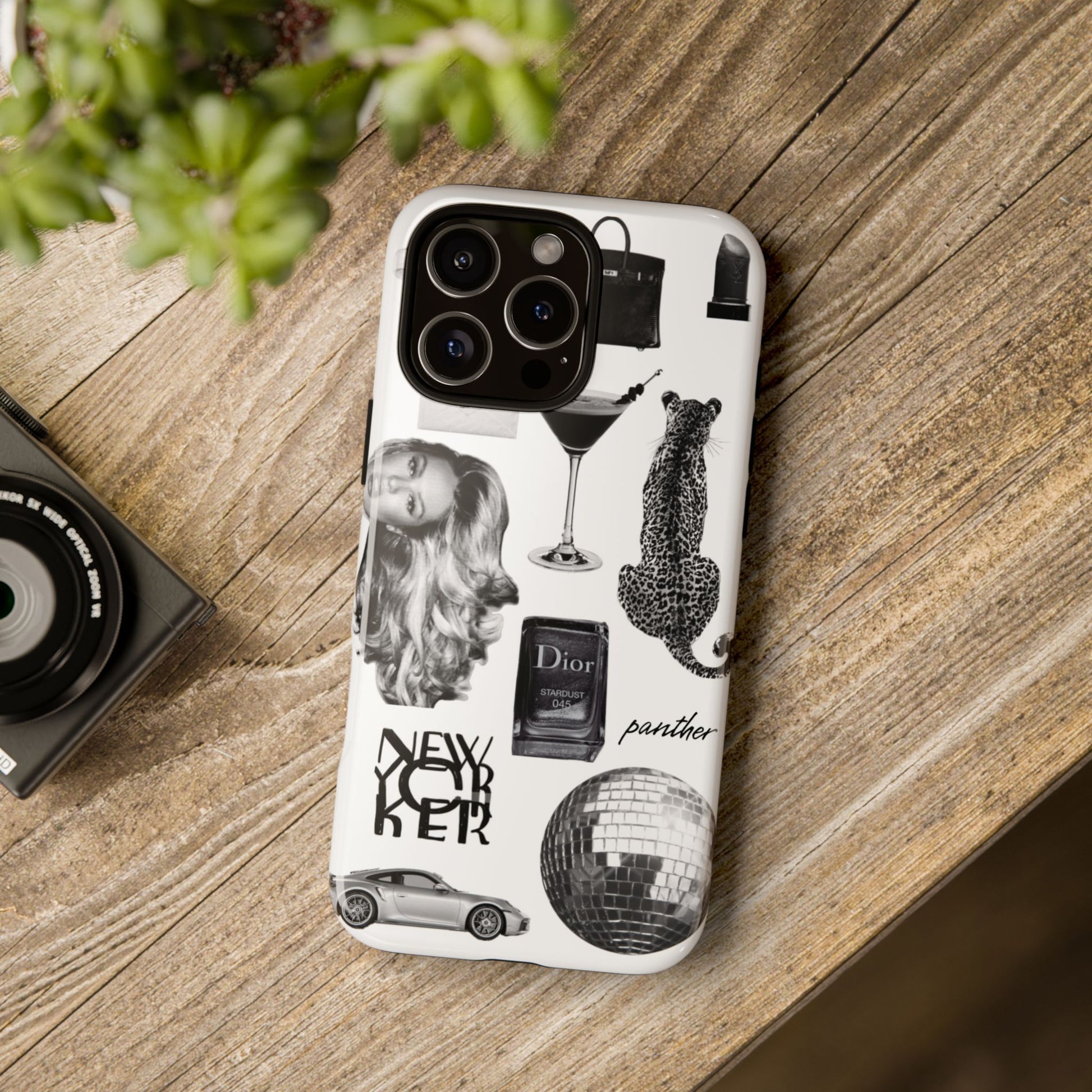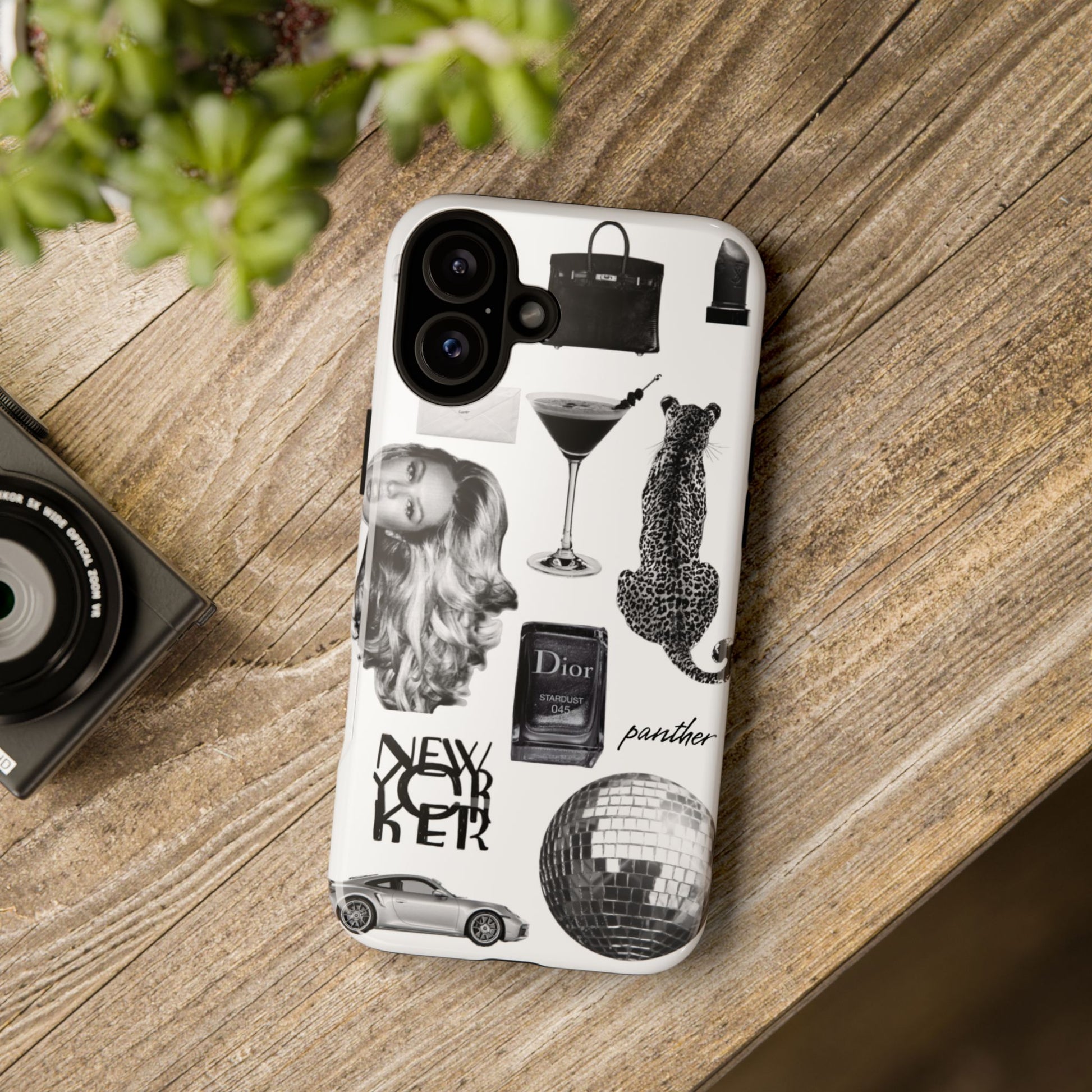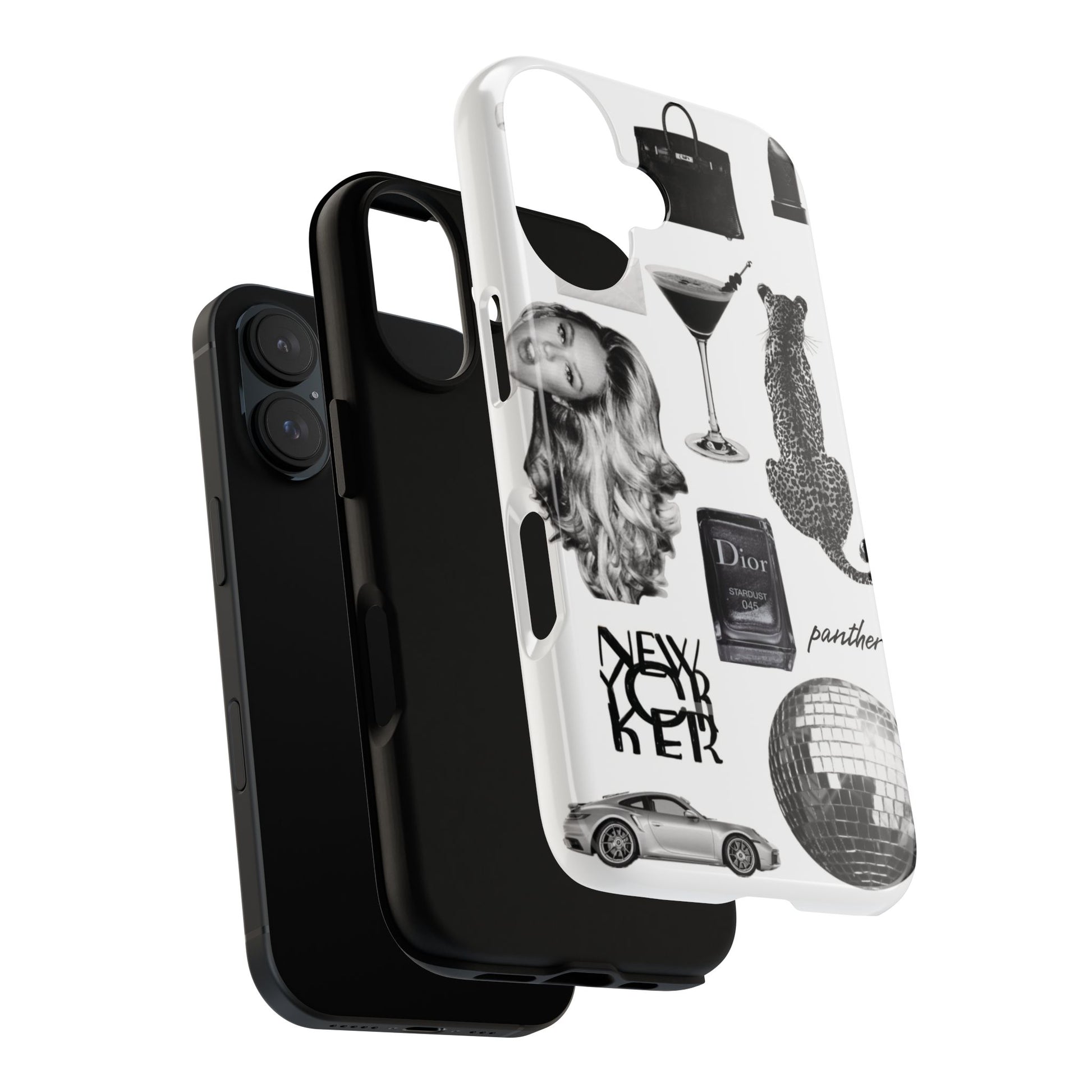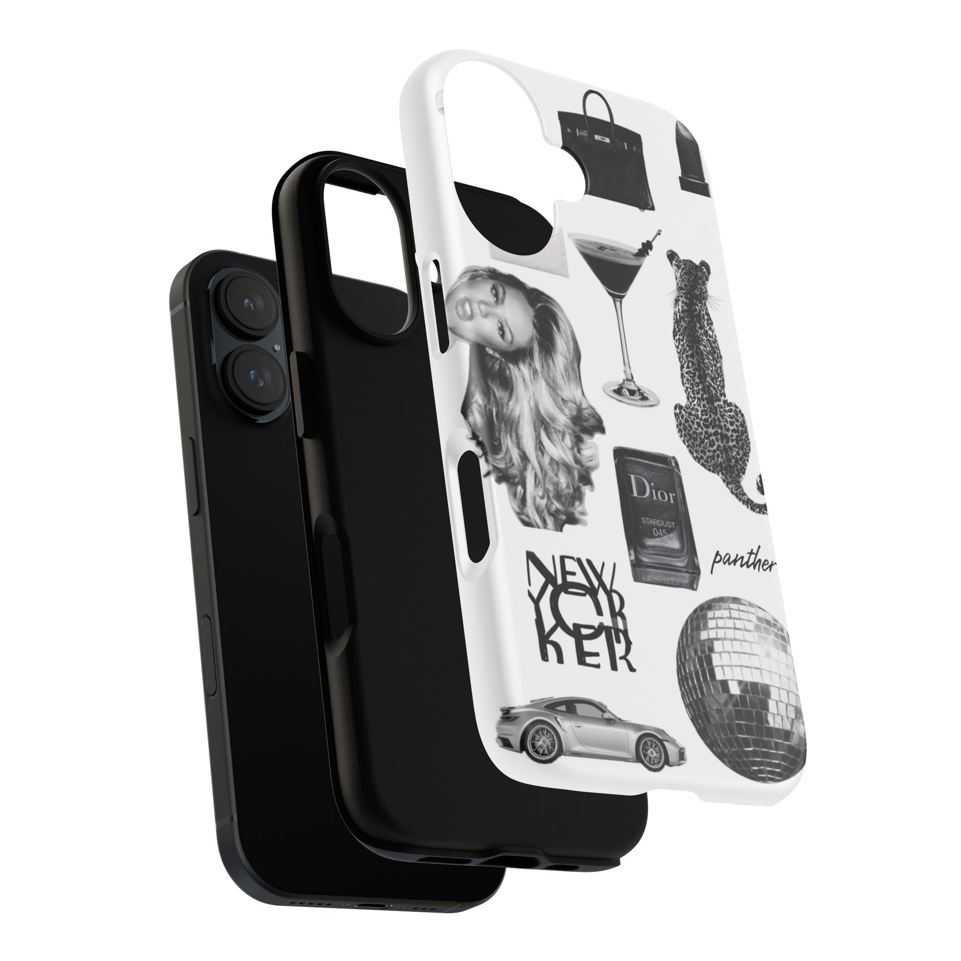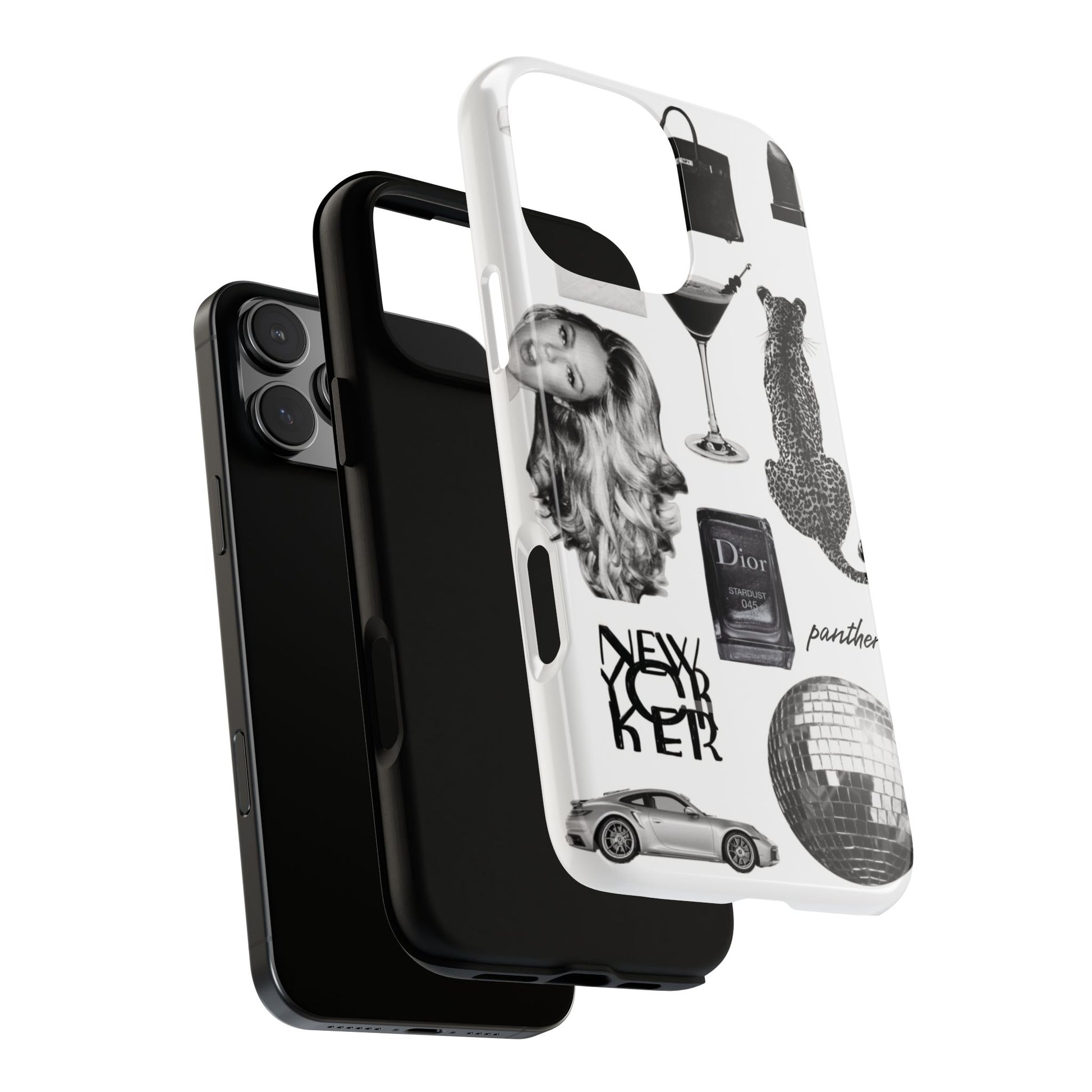 This glamorous and chic phone case is perfect for anyone who loves bling and silver accents. Featuring a stylish leopard print and iconic New York and Porsche design elements, this case is sure to stand out.