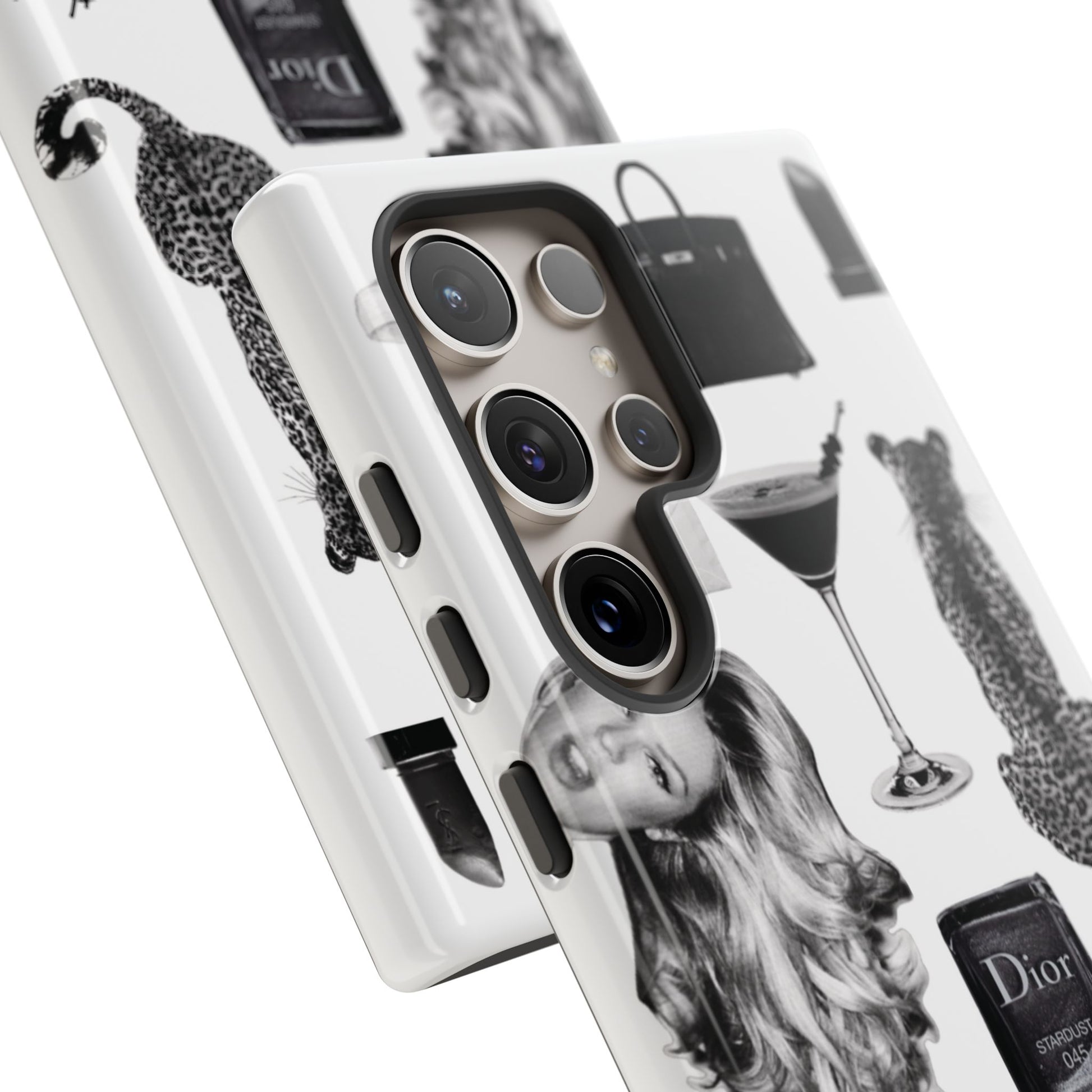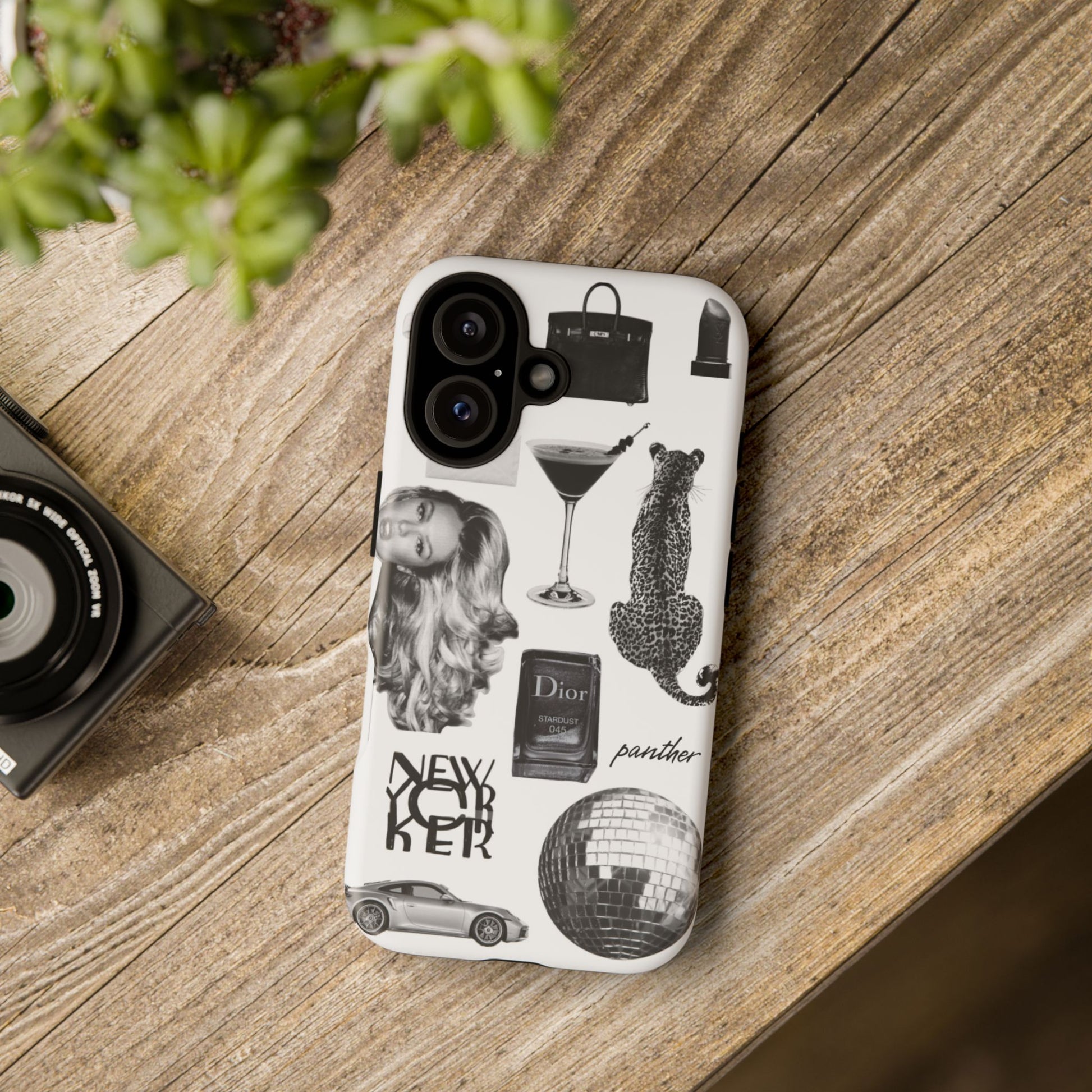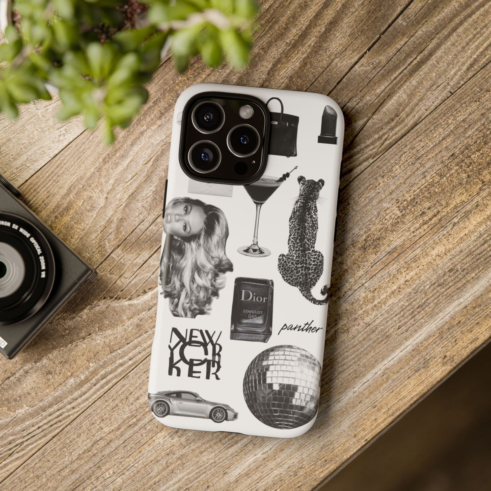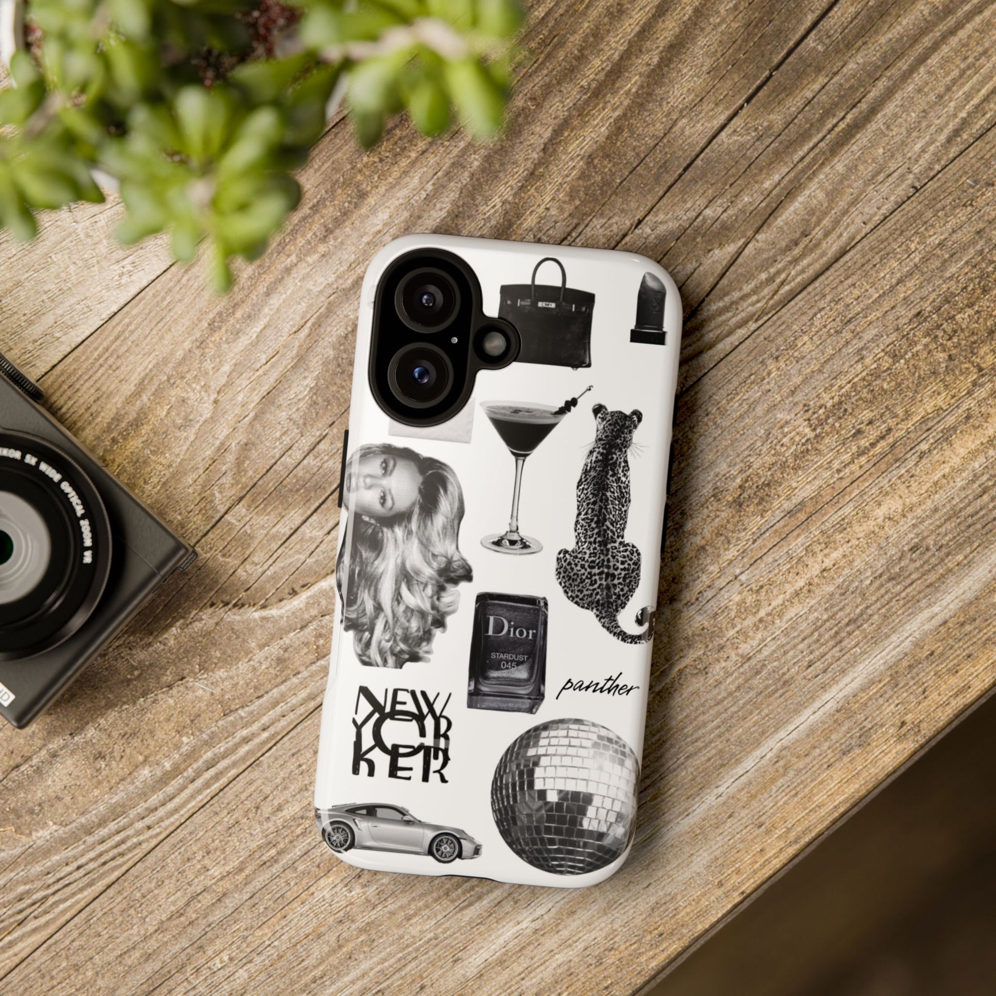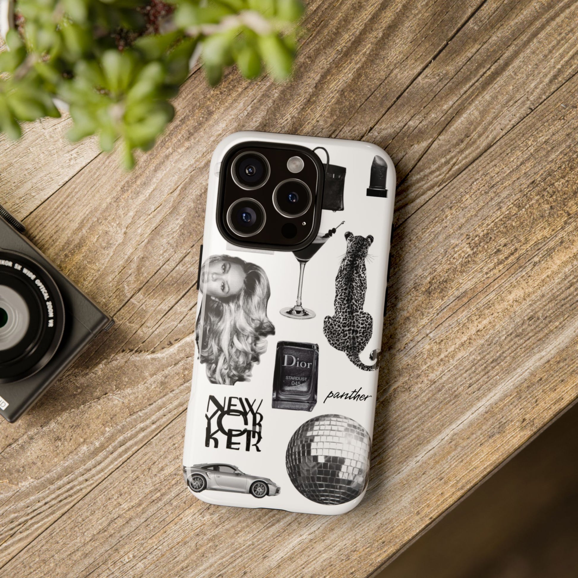 This glamorous and chic phone case is perfect for anyone who loves bling and silver accents. Featuring a stylish leopard print and iconic New York and Porsche design elements, this case is sure to stand out.